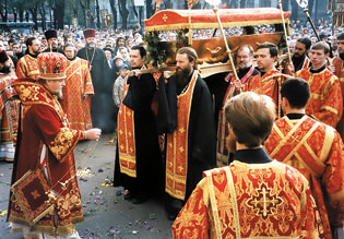 Nākamajā dienā, 25. septembrī Pokrova kapos kapelā notika panihida un pēc tam krusta gājiens pa pilsētas ielām aiznesa šķirstu ar svēto pīšļu daļu uz Rīgas Kristus Piedzimšanas katedrāli. Krusta gājienā piedalījās Latvijas garīdzniecība, Rīgas Svētās Trijādības Sergija sieviešu klostera māsas un vairāk nekā trīs tūkstoši dievlūdzēju.